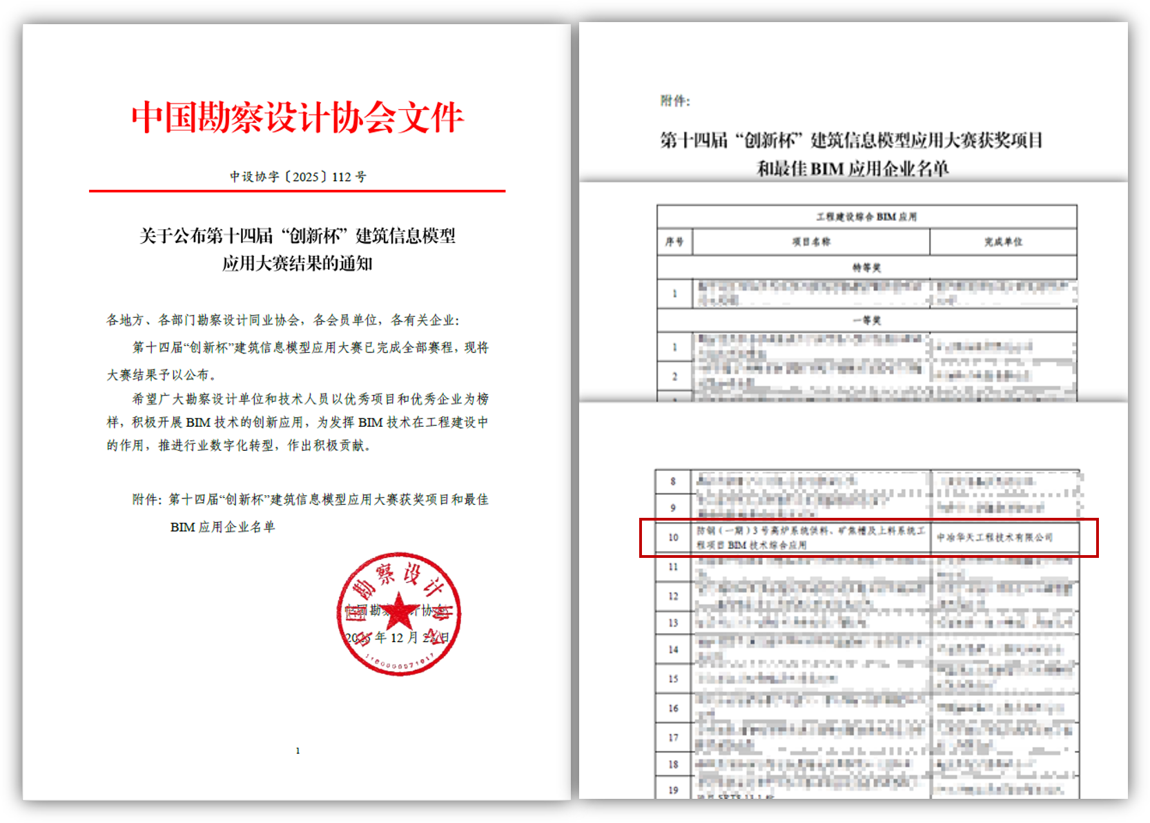 近日,中國勘察設計協(xié)會正式公布2025年第十四屆“創(chuàng)新杯”建筑信息模型應用大賽獲獎名單。中冶華天參賽項目《防鋼(一期)3號高爐系統(tǒng)供料、礦焦槽及上料系統(tǒng)工程項目BIM技術綜合應用》在高手如云的“工程建設綜合BIM應用”組中脫穎而出,榮獲“一等獎”。這是該項目繼摘得2025年中國施工企業(yè)管理協(xié)會第六屆工程建設行業(yè)BIM大賽特等獎,再度攬獲國家級權威大獎。這一系列沉甸甸的榮譽,不僅是對中冶華天項目建設成果與高品質項目履約能力的高度認可,更是集中展示了其作為“冶金建設國家隊”第一梯隊的深厚技術實力和在工程數(shù)字建造領域的持續(xù)創(chuàng)新能力。